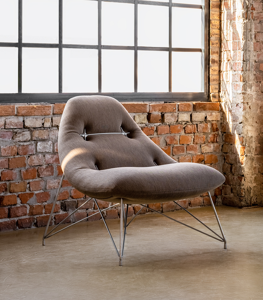 Peach challenges the conventions of upholstered furniture by focusing on a hidden yet crucial design question: how to shape foam in a more sustainable, less wasteful way. Instead of relying on molded or intricately cut foam - which either drives up costs or produces significant waste - we work with flat foam and “tuft” it using custom metal elements. These pieces tension the foam into its final form without any need for adhesives, allowing for easy disassembly, cleaning, and eventual recycling. In doing so, Peach becomes a structural approach to sustainability - one that’s usually invisible, but here is made boldly visible and integral to the chair’s distinctive aesthetic.